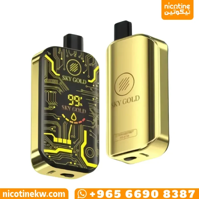Sky Gold 25000 puffs available in 11 different flavors with 20mg nicotine strength, airflow control, flavor level display, and charging